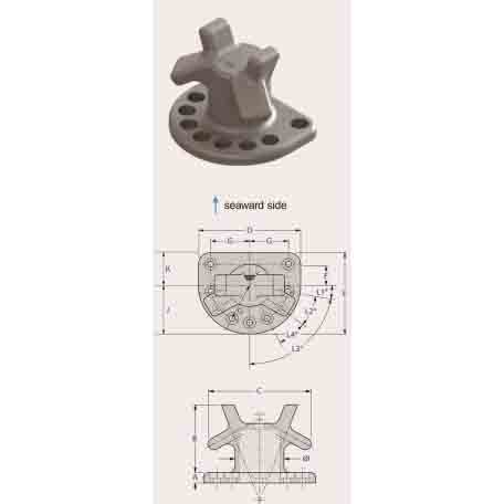 - 3D View: A three – dimensional image of the horn bollard is presented on the left side, showing its overall shape and the seaward side indication.